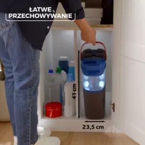 Ergonomiczna konstrukcja zapewnia bezproblemową obsługę i oszczędność miejsca przy przechowywaniu – idealne rozwiązanie dla każdego gospodarstwa domowego. Płaska końcówka myjąca 360° bez problemu dotrze pod meble i zakamarki sprawiając, że sprzątanie będzie łatwe i efektywne.